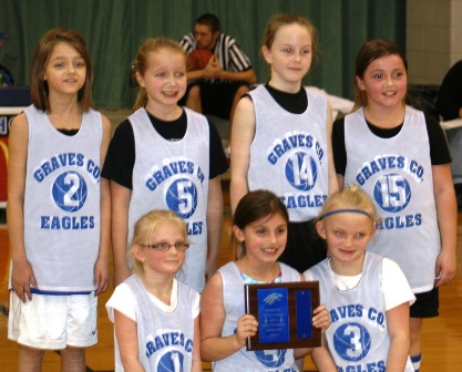 The Graves County Central Elementary Lady Knights second and third grade girls’ A Team won the Graves County Little League District Basketball Championship. Pictured, from left, (standing) are Natalie Fulton, Macy Rodgers, Raychel Mathis, Makayla Marler, (kneeling) Devanna Faulkner, Josie Erdmann, and Danielle Faulkner.
