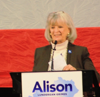 Clinton was the star of a line up of Democrat past and present elected officials who are stumping for Grimes. Former Governors Martha Layne Colliins and Heath native Julian Carroll took their turn exhorting the crowd to fill volunteer forms and work hard in the final days of the campaign.