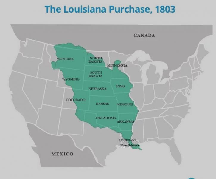 "In this transaction with France, signed on April 30, 1803, the United States purchased 828,000 square miles of land west of the Mississippi River for $15 million. For roughly 4 cents an acre, the United States doubled its size, expanding the nation westward." National Archives.